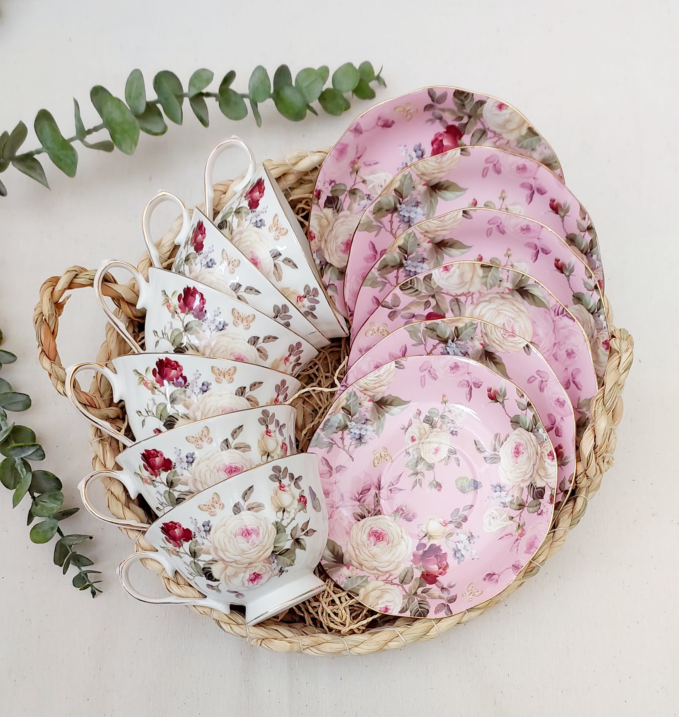 فنجان و نعلبکی طرح گل اروپایی چینی