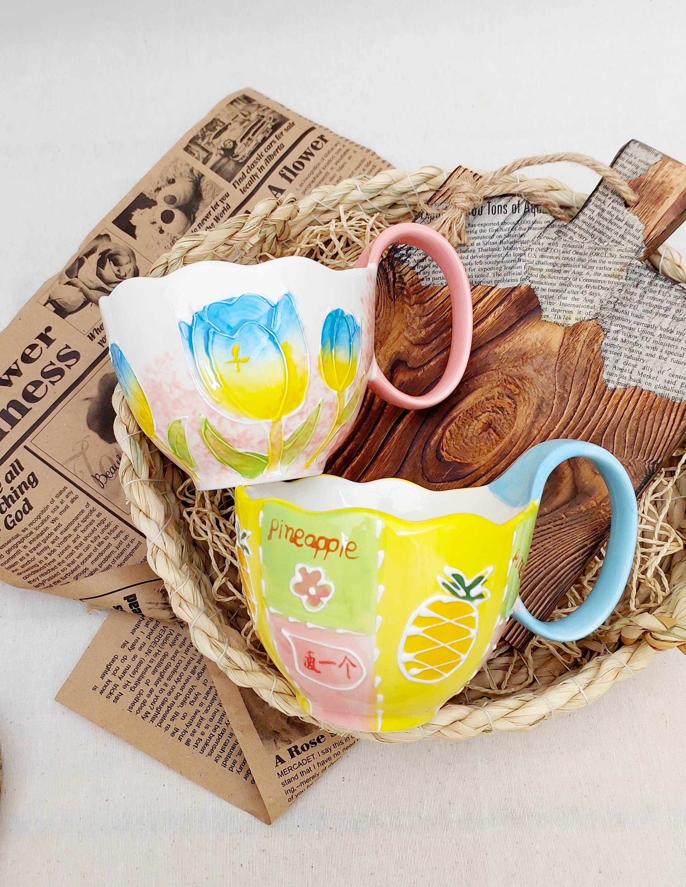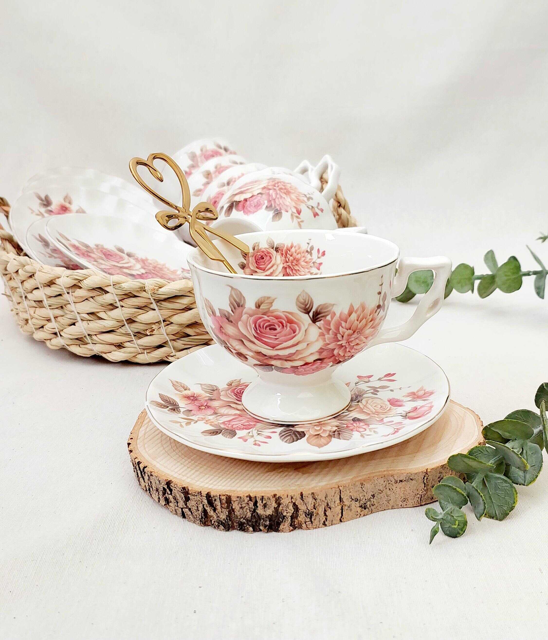 فنجان و نعلبکی چای خوری چینی برجسته طرح گل اروپایی