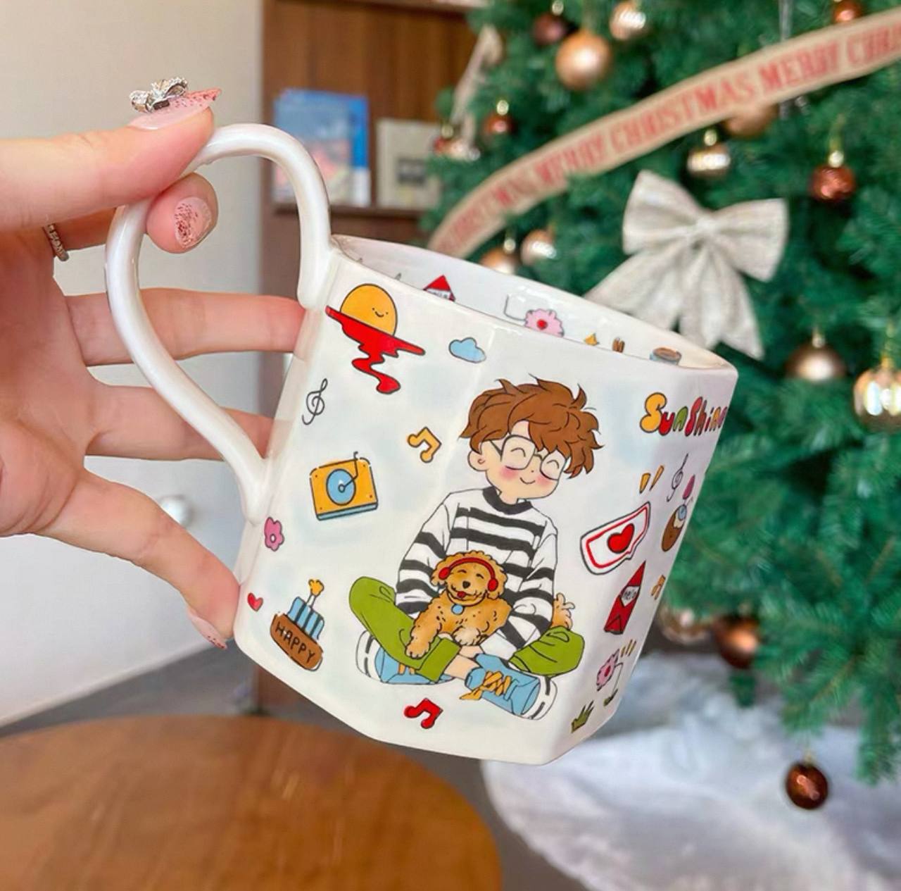 ماگ آسانسوری بیسکویت زنجبیلی و طوسی سرامیکی