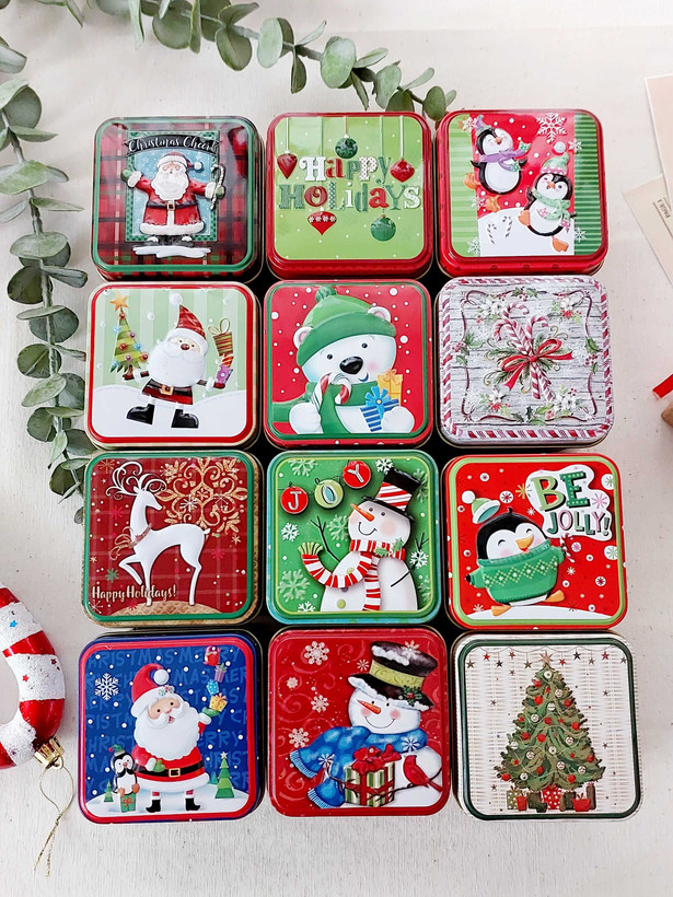 قوطی فلزی مربع کریسمسی