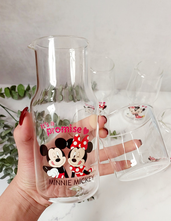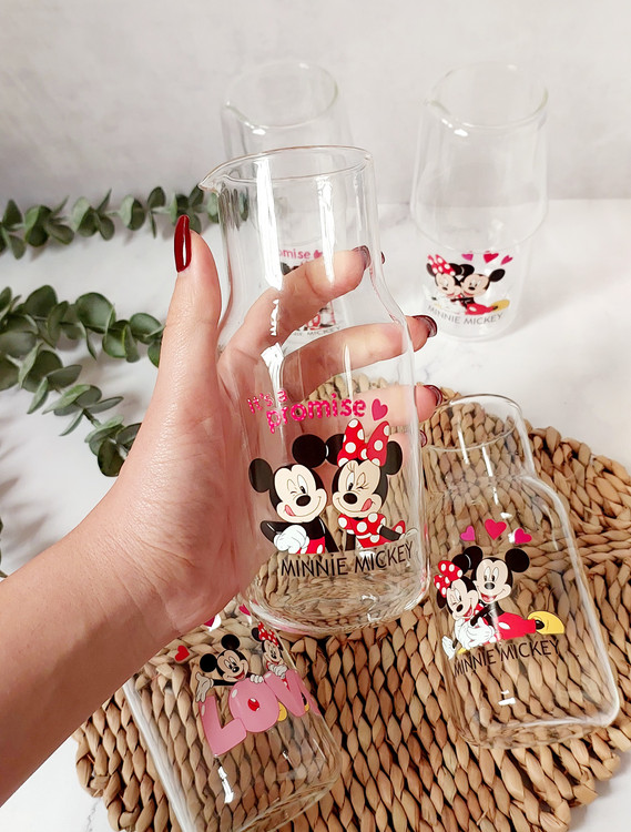 پارچ شب به همراه لیوان پیرکس طرح میکی و مینی موس