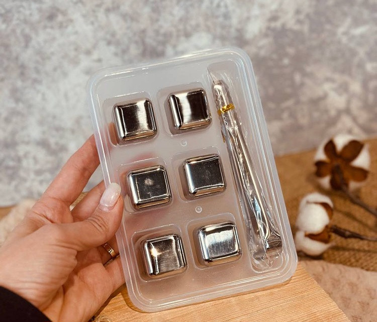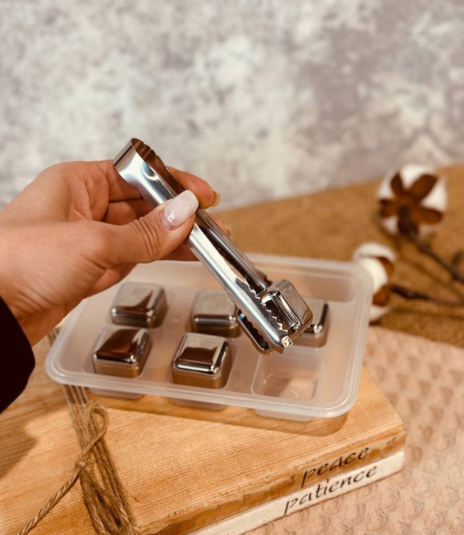یخ استیل مکعبی ۶ عددی به همراه انبر