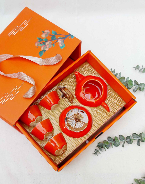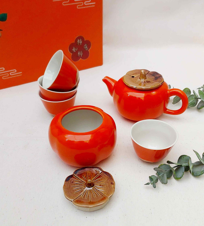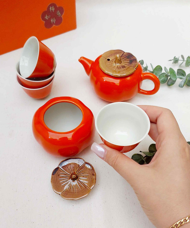ست دمنوش و قوری سرامیکی خرمالو 🍃