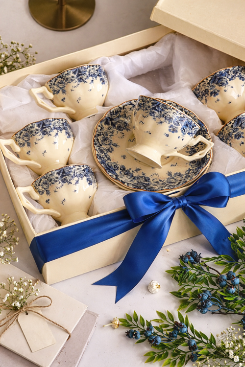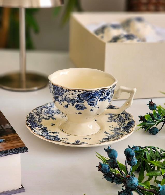 فنجان و نعلبکی پایه دار گل ابی
