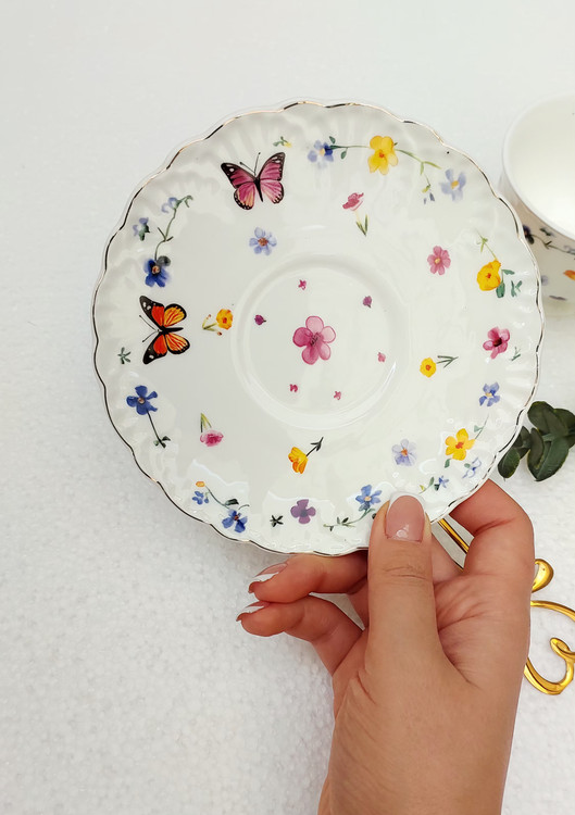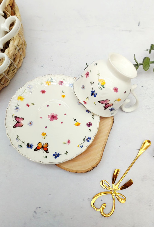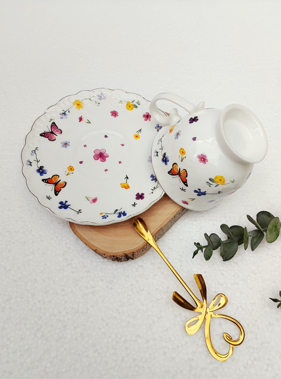 فنجان و نعلبکی پایه دار تک نفره گل و پروانه