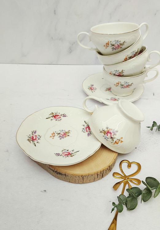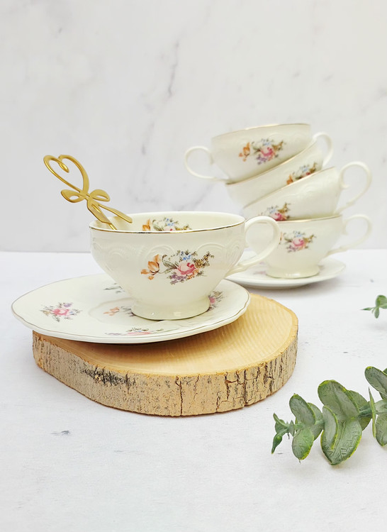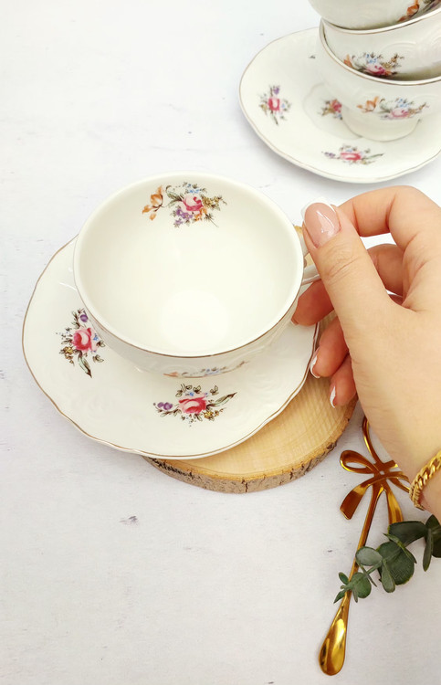 فنجان تک نفره طرح گل اروپایی